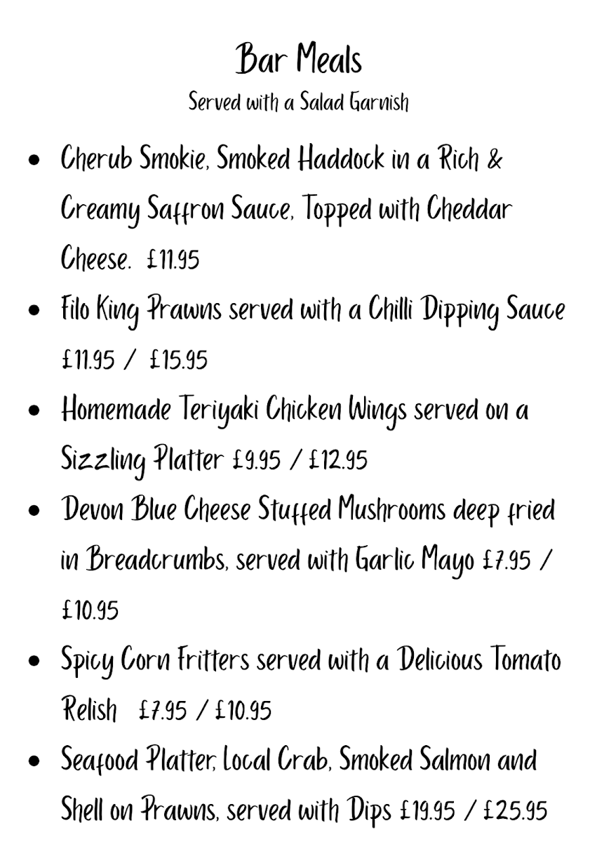 Welcome to The Cherub Inn, a charming pub nestled in the heart of Dartmouth. This delightful eatery offers a menu that strikes the perfect balance between comfort and quality, showcasing classic British flavors with a twist. Each dish is prepared to perfection and served simply, allowing the natural flavors to shine through.
